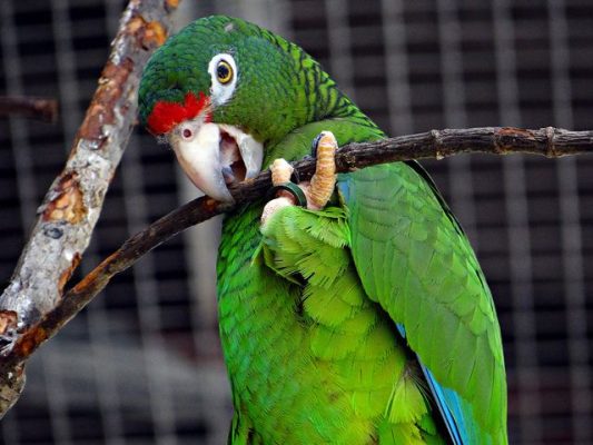 The Puerto Rican amazon reaches sexual maturity at between three and four years of age. It reproduces once a year and is a cavity nester. Once the female lays eggs she will remain in the nest and continuously incubate them until hatching. The chicks are fed by both parents and will fledge 60 to 65 days after hatching. This parrot’s diet is varied and consists of flowers, fruits, leaves, bark and nectar obtained from the forest canopy.